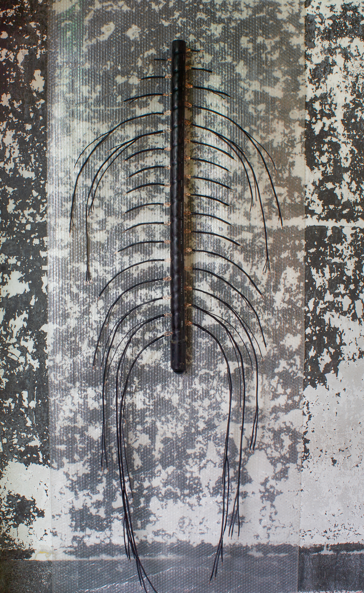 Dura Mater II also consists of a single discarded underground cable from the city of Basel, which contains approximately 100 individual cables inside. As a more complex version of the first Dura Mater, it incorporates thirty-two precisely placed holes, forming a kind of advanced nervous system.